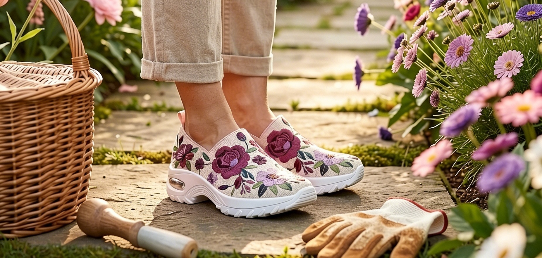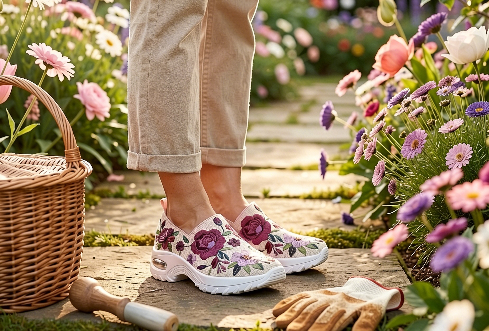 Mixed Peony & Wildflower on Cream Embroidered Orthopedic Arch Support Shoes