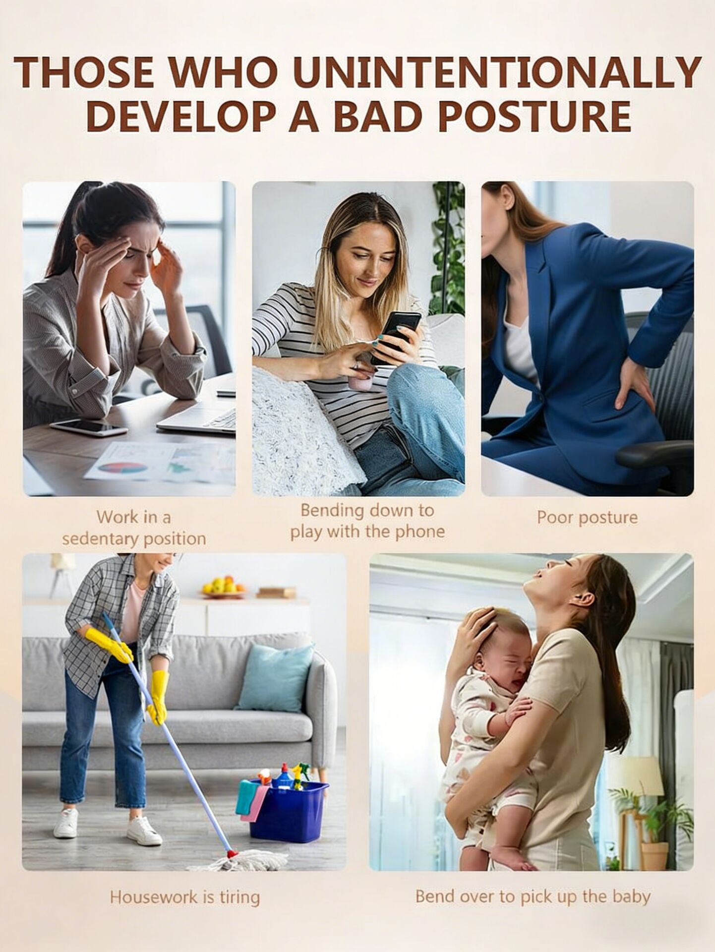 Whether young or old, postural problems are quietly accumulating. Young people spend long hours sitting at desks and looking down at their phones, leading to increasingly noticeable slouching, rounded shoulders, and forward head posture; while middle-aged and older adults often suffer from chronic shoulder and back strain, with hunchback, neck discomfort, and stiff shoulders and neck becoming everyday problems.