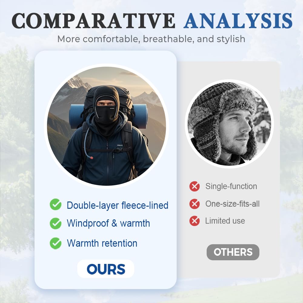 Full-coverage cut, hat, face mask, and neck warmer in one, providing 360° protection for the head, face, and neck, preventing cold wind from getting in through gaps.